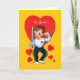 Vintage/cartão retro do dia dos namorados.  Esgrimista masculino adorável do epee que está en garde!  En Garde!