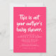 Os tempos modernos exigem um convite ao chá de fraldas moderno. Se você está fazendo a festa online devido ao distanciamento social, este é um convite perfeito para você. O texto ousado e lúcido diz "Este não é o chá de fraldas da sua mãe" e os detalhes da festa abaixo incluem espaço para informações sobre reuniões sociais online, registro, informações de envio e muito mais junto com os detalhes da festa. A parte traseira apresenta um padrão de ponto lúdico. A cor rosa quente vívida é o padrão, mas pode ser alterada clicando em "personalizar mais". Excelente para chás de co-ed, chás de adoção e dois pais ou dois casais da mãe também - e qualquer um que aprecie seu senso de humor e sagacidade!