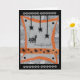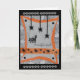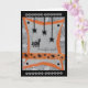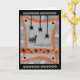 Este cartão de saudação divertido do Dia das Bruxas foi desenhado digitalmente com base num original feito à mão pela Gilded Quill. A frente mostra um gato assustador sendo assustado por aranhas pretas que caem do teto. Dentro, o cartão tem a saudação de "Feliz Dia das Bruxas"!