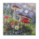 Azulejo mágico místico com ferramentas toadstools bonito na chuva e uma flor branca fofa. Em um cenário de floresta encantador.