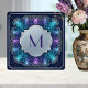 Transform your walls into a work of art with this decorative ceramic tile showcasing the initial 'M' within an enchanting, swirling design. The mesmerizing interplay of teal and purple hues, set against a deep navy background with subtle circuit board motifs, creates a truly unique aesthetic. Delicate gold accents and a silver-toned frame enhance the luxurious feel of this piece. Ideal for creating a statement backsplash, a charming accent wall, or a distinctive tabletop, this tile brings an element of mystical beauty and contemporary design to any setting.