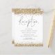 Um valor para o alternativo do ORÇAMENTO em tamanho menor de 4,5 x 5,6" de semirbrilho de 110 lbs, que é de espessura semelhante a um cartão postal (no entanto, não é adequado para uso como cartão postal). POR FAVOR, NOTE que existe UM por folha. Receptáculo de Recepção de casamento com Glitter Dourado de orçamento. Um script moderno para o cabeçalho e o resto do texto que você pode personalizar facilmente, com bordas falsas e reluzentes nas bordas superior e inferior de ambos os lados do ouro.