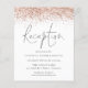 Um valor para o alternativo do ORÇAMENTO em tamanho menor de 4,5 x 5,6" de semirbrilho de 110 lbs, que é de espessura semelhante a um cartão postal (no entanto, não é adequado para uso como cartão postal). POR FAVOR, NOTE que existe UM por folha. Gabinete de Recepção de casamento de Glitter Dourado de Rosa orçamental. Um script moderno para o cabeçalho e o resto do texto que você pode personalizar facilmente, com bordas falsas e reluzentes no topo de cada lado em ouro rosa.