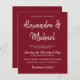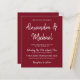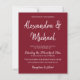 Elegante trendy tipografia do orçamento barato convite para casamento em simples burgundy vermelha escura e letreiros brancos com nomes de noiva e noivo com roteiro de caligrafia. ++++++++++++++++++++++ Você pode alterar as cores do texto e do plano de fundo após selecionar a opção PERSONALIZAR mais. +++++++++ O convite é adequado para qualquer época - primavera, verão, outono, inverno - recepção de casamento interior.