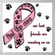 Outra design que é mais genérica para amantes de cães e apoiadores dos esforços para encontrar uma cura para o cancer em nossos cães. Mais uma vez, temos uma bela fita rosa de sensibilização que tem "Encontrar uma Cura" junto com as pegadas. O resto da design tem mais impressões com o slogan "os nossos melhores amigos contam conosco".