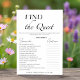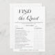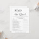 Apresentando o cartão de jogo de Chá de panela preto e branco minimalista "Find the Guest" (Encontre o convidado), projetado por CaMiDesigns. Este jogo elegante adiciona um elemento divertido e interativo a qualquer chá de panela, encorajando os convidados a misturar-se enquanto buscam fatos únicos uns sobre os outros. Com seu elegante design preto e branco, ele complementa qualquer tema de chá de panela, fazer-o como na moda para sua celebração. Para obter assistência com pedidos, envio, informações sobre produtos e muito mais, entre em contato diretamente com o Atendimento ao Cliente da Zazzle.