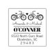 Um par de bicicletas para um casal fica no topo deste selo de endereço. Abaixo estão os seus primeiros nomes em uma fonte de script caprichoso e seu sobrenome e endereço, todos em fontes serif correspondentes. Perfeito para estampar sua papelaria de casamento ou como presente para casais recém-casados ou noivos ou qualquer um que ama bicicletas!