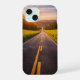 A long, empty road stretching through a vast desert landscape under a warm sky.