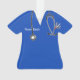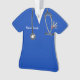 Enfeite de presente criativo para enfermeira, médico ou assistente médico com uniforme hospitalar azul, estetoscópio e caneta suíça engraçada. Para personalizar, edite o texto para adicionar o nome.