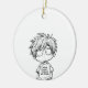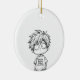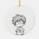 Um menino anime chibi fofo e engraçado com uma expressão confusa e cabelo desgrenhado. Um design minimalista preto e branco perfeito para amantes de anime e fãs de humor.