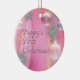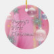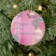 Flocos de neve brancos e rosa e enfeites de árvore de Natal enfeite de primeiro Natal do cachorrinho rosa.