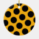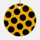 Bolinhas pretas em um fundo amarelo dourado.