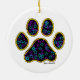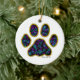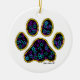 Desenho de impressão de pata, estrelas, por Glenda S. Harlan em um enfeite de Natal de cerâmica.