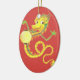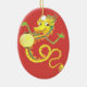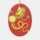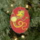Um enfeite com um Dragão Chinês com efeito dourado em um fundo vermelho profundo, de um design pintado à mão por Judy Adamson.
