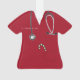 Presente criativo de Natal para enfermeira com uniforme vermelho, estetoscópio e bengala de Natal no bolso. Para personalizar, edite o texto para adicionar o nome.