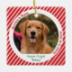 Lembre-se do seu melhor amigo com um enfeite de Natal personalizado com um clássico padrão de caneta de doce vermelha e branca e texto verde. Esse enfeite de Natal moderno e fofo de memorial para animais de estimação é uma maneira atenciosa de celebrar a vida do seu animal de estimação e manter sua memória próxima durante as festas. Perfeito para um enfeite de foto de cachorro ou presente de lembrança de perda de animal de estimação, é uma homenagem tocante ao Natal no Céu para qualquer amante de animais. Um belo enfeite de condolências para homenagear um animal de estimação querido que está para sempre em nossos corações - uma lembrança duradoura que traz conforto e amor à sua decoração de Natal.