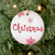Celebre a beleza da estação com este elegante enfeite de Natal com um fundo suave cor de blush, delicados flocos de neve vermelhos e um design caprichoso com a palavra “Christmas” em letra cursiva.