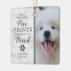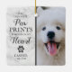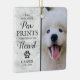 Decoração de árvore de Natal memorial de animal de estimação com foto do seu cão ou gato querido, fundo de mármore branco moderno, uma pegada com um coração, uma citação de lembrança de pesar que diz "você deixou suas pegadas para sempre no meu coração", além do nome deles e datas. Coloque-o na sua árvore de Natal ou em qualquer lugar da sua casa, este enfeite faz um presente único para alguém especial.