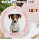 Mantenha a memória do seu querido animal de estimação perto nesta temporada de Natal com o nosso Ornamentro de Natal rosa bege com foto de memorial de animal de estimação. Desenhado cuidadosamente para homenagear o vínculo especial que vocês compartilharam, este ornamento apresenta espaço para uma foto querida do seu amigo peludo, permitindo que você celebre a memória dele a cada Natal. Feito com amor, o ornamento inclui detalhes delicados como pegadas e uma opção para nome e data personalizados. Uma bela lembrança para a sua árvore, serve como um lembrete suave de que nossos animais de estimação estão sempre conosco, mesmo em espírito.