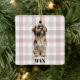 "Celebre seu amigo peludo nesta temporada de festas com um enfeite de Natal personalizado que é tão especial quanto eles! Este enfeite encantador apresenta a foto e o nome do seu cachorro, lindamente emoldurados em um fundo de xadrez pastel suave para um toque aconchegante e festivo. Uma lembrança perfeita para os amantes de animais de estimação, este enfeite personalizado adiciona calor, amor e um pouco de alegria à sua árvore de Natal ano após ano."