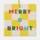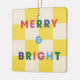 Criado para combinar com a coleção de cartões de Natal "Tabuleiro de Xadrez Alegre e Brilhante", este enfeite de Natal caprichoso apresenta a frase "Alegre e Brilhante" em letras negritas e coloridas, colocadas sobre um padrão moderno de tabuleiro de xadrez amarelo. A parte de trás do enfeite tem espaço para uma foto do cliente.
