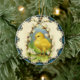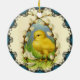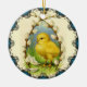 Lindo enfeite de Natal com um pequeno pintinho rodeado por botões de flores. Agradável para pessoas que colecionam enfeites de pássaros.