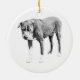Um souvenir dimensional em tons de cinza que se encaixa em qualquer tema. A postura fiel fotografa lindamente entre luzes e fitas. Um favorito anual para lares que amam cães.