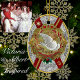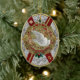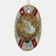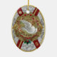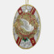 Este ornamento estilo europeu do Velho Mundo dá um toque de estilo real à sua árvore de Natal. A imagem de fundo de uma intricada renda normanda envolvida por faixas de fita de uniforme militar principesco, a imagem de uma grinalda de Dresden em papel de folha de ouro, repleta de jóias e com detalhes dourados, e a Pomba da Paz se unem para criar uma imagem encantadora e imponente. Este design digital em camadas foi criado colocando-se muitos enfeites individuais meticulosamente à mão (ou com o mouse?). O verso é igualmente opulento. É personalizável com o ano, uma saudação personalizada e nome pessoal (ou nome da família) para criar um presente único ou lembrança da família. Confira todos os nossos presentes ornamentados 'Dresden Christmas' e decorações de Natal da Cheeky_Poppets!