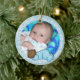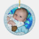 O ornamento de guarnição personalizável de natal de 1rua do bebê com um bebê dormindo num design de floco de neve azul e suave. Você pode personalizar facilmente este ornamento com a foto do bebê e adicionar seu próprio texto ao fundo. É excelente como presente de Natal de 1rua e será recordação para os próximos anos.