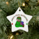 Você pode facilmente mudar o ano neste personalizável ornamento de natal de Elf Baby 1rua afro-americano antes de fazer pedidos. Possui um bebê de terno verde e boné de estocagem e texto que diz "O Primeiro Natal do Bebê!".
