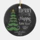 Os amantes do bigode psyched totalmente para ver este ornamento do feriado do Natal do design do quadro e do bigode. Uma coleção dos bigodes compo uma árvore de Natal espirituoso do verde, com os flocos de neve delicados no fundo. A tipografia do quadro dá a este ornamento sazonal um perfurador extra. Mantenha-a para o senhor mesmo ou dê-a como um presente. Você pode facilmente personalizá-lo com o nome e a data usando o modelo dado.