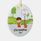 Jogador de basquetebol vermelho & branco datado personalizado que guardara um basquetebol com uns enfeites de natal da aro de basquetebol. Um presente do Natal da maravilha sure a ser estimado por muitos próximos anos.