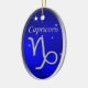 Um símbolo gráfico vetorial Capricórnio num céu estrelado pelo artista/designer Charmaine Paulson design em um Enfeites de natal. O ornamento tem o texto Capricórnio e um modelo de texto no verso para sua personalização. Nota: Capricórnio Dez 22-jan 19