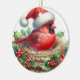 Cardeal Vermelho num ninho com um chapéu de Papai Noel vermelho