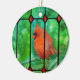 Em lindas cores de Natal, este ornamento representa um cardeal glorioso e vermelho sentado fora de uma janela de vidro manchado.
