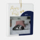 Lembre-se do seu querido com este enfeite de Natal com foto de memória. Este design apresenta letras douradas modernas "Para Sempre em nossos Corações" com blocos de cores geométricas (Preto e Branco). Você pode adicionar sua foto e personalizar o texto. Mais presentes e cartões de Natal estão disponíveis na minha loja BaraBomDesign.