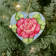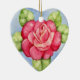 O coração deu forma a enfeites de natal com minha pintura de uma rosa vermelha e das folhas do verde em um fundo azul. Podia igualmente ser um ornamento bonito do dia das mães ou do querido.