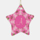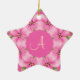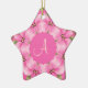 Bonito para o primeiro Natal do bebê, ou a toda a jovem senhora, este ornamento cerâmico dado forma estrela tem um círculo de flores cor-de-rosa com uma área no centro para uma inicial. Você pode mudar esta inicial datilografando em uma letra diferente.