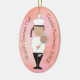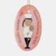 Menina hispânica bonita, mulher, cozinheira feminina com habilidade e colher neste ornamento de árvore de Natal para seu cozinheiro ou formando culinário favorito.