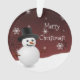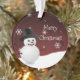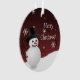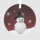 Adicione um toque balbucioso à sua árvore de Natal com um Ornamento de Cena de Inverno Red Snowman. Design de ornamento apresenta um boneco de neve feliz em uma cena de ventania de neve contra um fundo vermelho adornado com flocos de neve de cor correspondente. Itens adicionais de presentes e feriados disponíveis com este design também.
