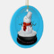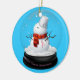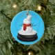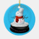 Enfeites de natal da consciência do cancro da mama. Pendure na árvore de Natal ou pendure na parede como uma decoração do xmas. Boneco de neve pequeno bonito que veste uma fita cor-de-rosa para o cancro da mama. Você pode mudar o fundo escolhendo o customize>edit>background. Este é um azul brilhante.