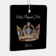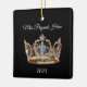 O ornamento cerâmico de Natal é mostrado em forma quadrada com uma adorável impressão de fotos com joias douradas. Personalize este item e altere o texto do exemplo com o nome pessoal do candidato, data ou outro.
