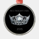 Enfeites de natal mostrados em uma forma redonda com uma coroa de prata bonito, com texto do fundo Prata-Cinzento e preto da cor. Mostrado com fita vermelha e a prata orlaradas. Personalize este artigo com sua nome, data ou outro pessoal da representação histórica.