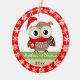 A coruja do bebê nas máscaras do marrom claro e escuro com máscaras de padrões cor-de-rosa no fundo branco e nas áreas de texto está no verde de musgo e no marrom. A neve lasca-se no branco no fundo vermelho. Isto é uma ilustração digital e customizável.