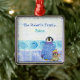 Este personagem de Penguins brancos no Play é água da mão colorida por Audrey Jeanne Roberts e pode ser personalizado para o perfeito Enfeites de natal Comemorativo da Família, especialmente para uma peça de inverno, esqui ou família de snowboard! Perfeito para ser tesouro por toda a vida. Este pinguim encantador com um pinguim bebê anuncia está em camadas sobre uma faixa azul e branca com borda de floco de neve e uma borda de vento invernal. Você pode colocar facilmente seu próprio texto onde o texto de amostra está agora. VOCÊ TAMBÉM PODERIA GOSTAR DE: