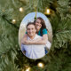 Ornamento da foto do Natal dos casais ø customizável com seus próprios foto, nomes e data no verde elegante, cor damasco floral clássica preto e branco. Uma maneira à moda de decorar sua árvore ou casa de Natal para os feriados. A maneira perfeita de recordar junto seu primeiro Natal como um casal.