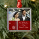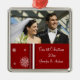 Ornamento da foto do Natal dos casais ø customizável com seus próprios foto, nomes e data em vermelho elegante e no branco com teste padrão festivo dos flocos de neve. Uma maneira à moda de decorar sua árvore ou casa de Natal para os feriados. A maneira perfeita de recordar junto seu primeiro Natal como um casal.