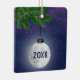 Um Enfeites de natal captivador da lua de cheio, elegantemente suspenso de uma tosse de pinho, tudo colocado contra um incrível pano de fundo estrelado do céu. Todo o texto pode ser alterado.