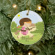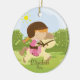 Personalize os enfeites de natal principais vermelhos pequenos bonitos datado da menina do cavaleiro de horseback ajustados em um fundo da grama & da árvore. O ornamento bonito do cavalo caracteriza a menina a mais doce que monta seu pônei. Um presente do Natal da maravilha sure a ser estimado por muitos próximos anos.
