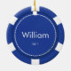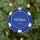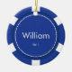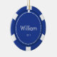 Estes enfeites de natal azuis customizáveis da microplaqueta de póquer podem ser personalizados com um nome e o ano. Fazem um grande presente do stuffer ou do Natal da meia.
